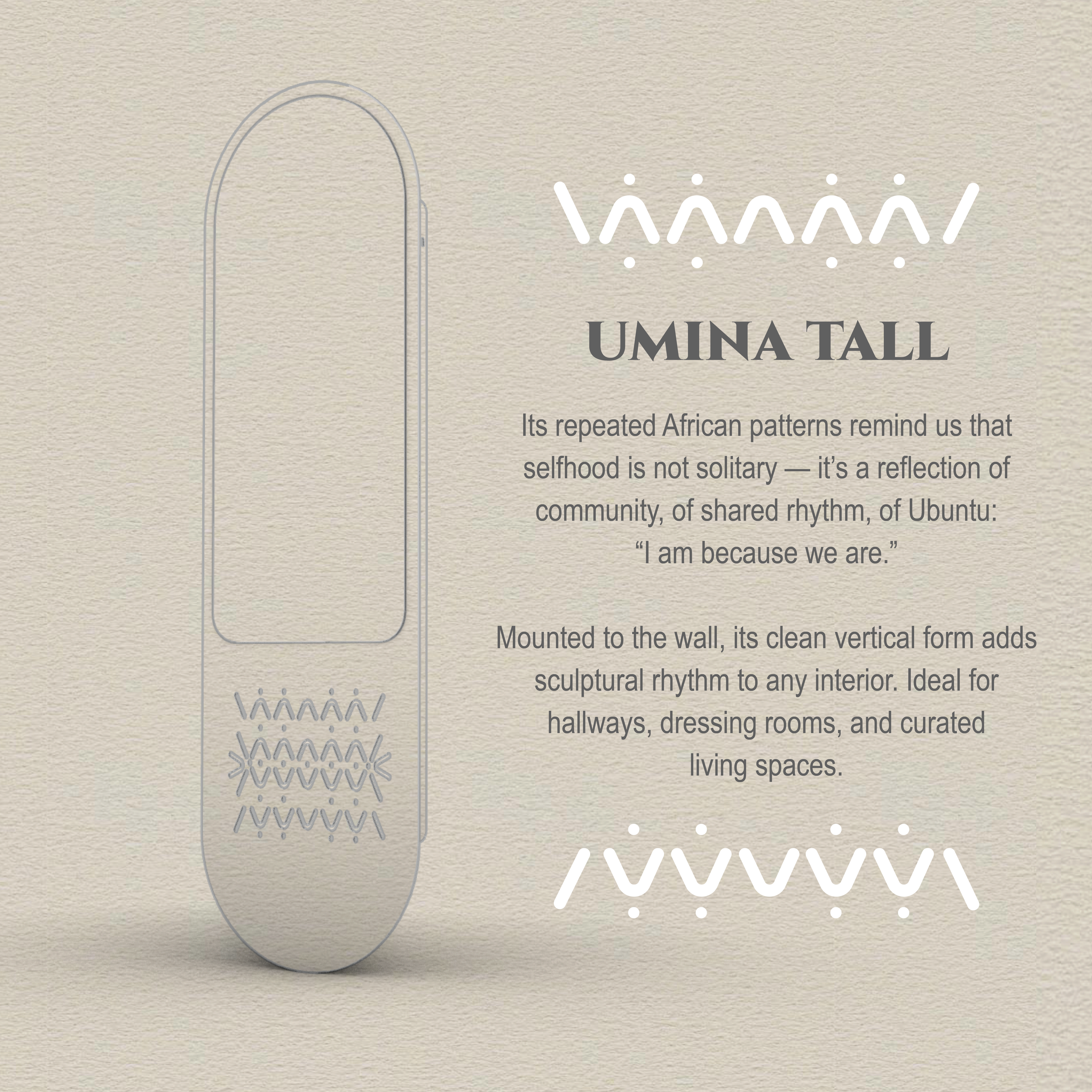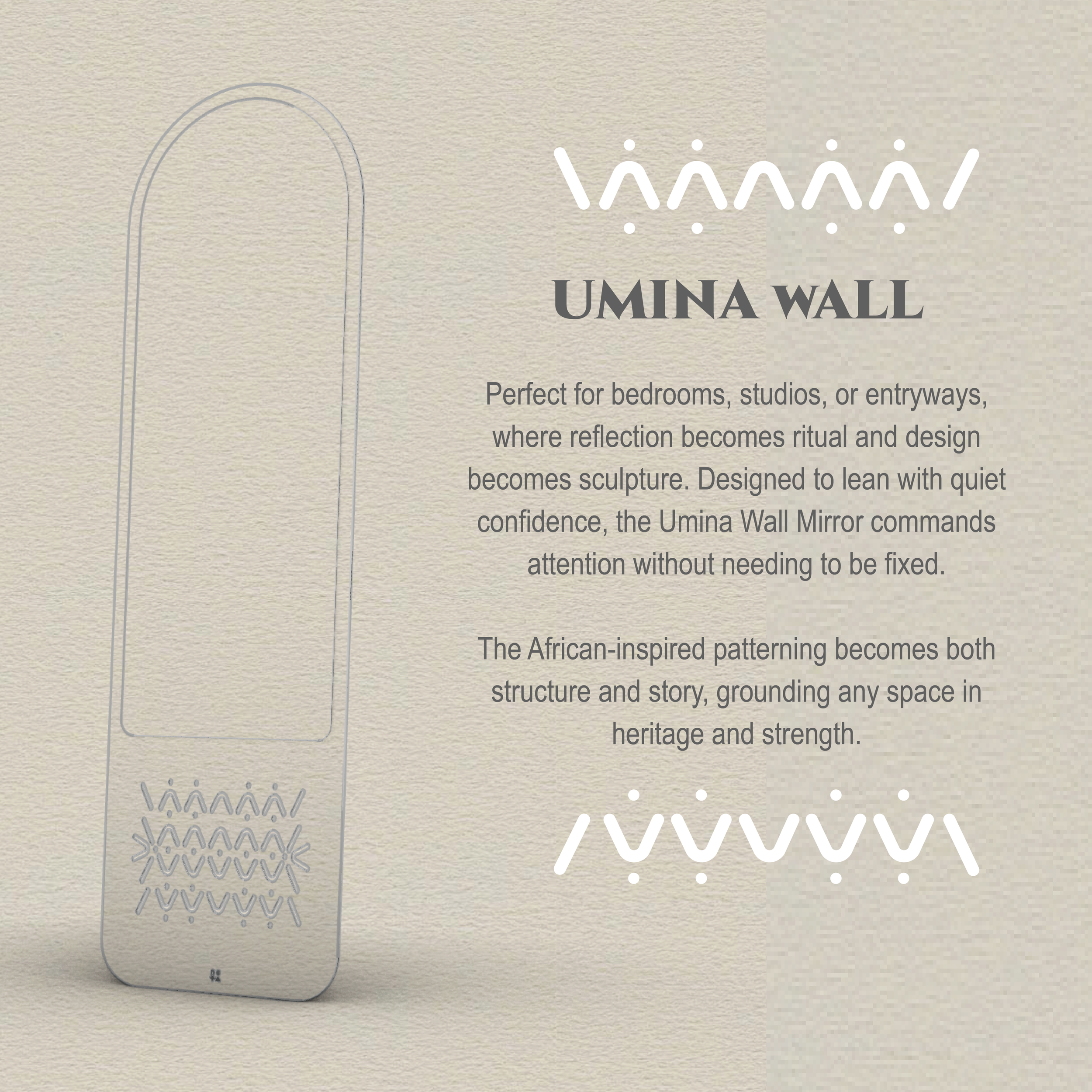 The influence draws from African traditions where identity and presence is relftced in the collective. UMINA reimagines this as a contemporary ritual object, a mirror.